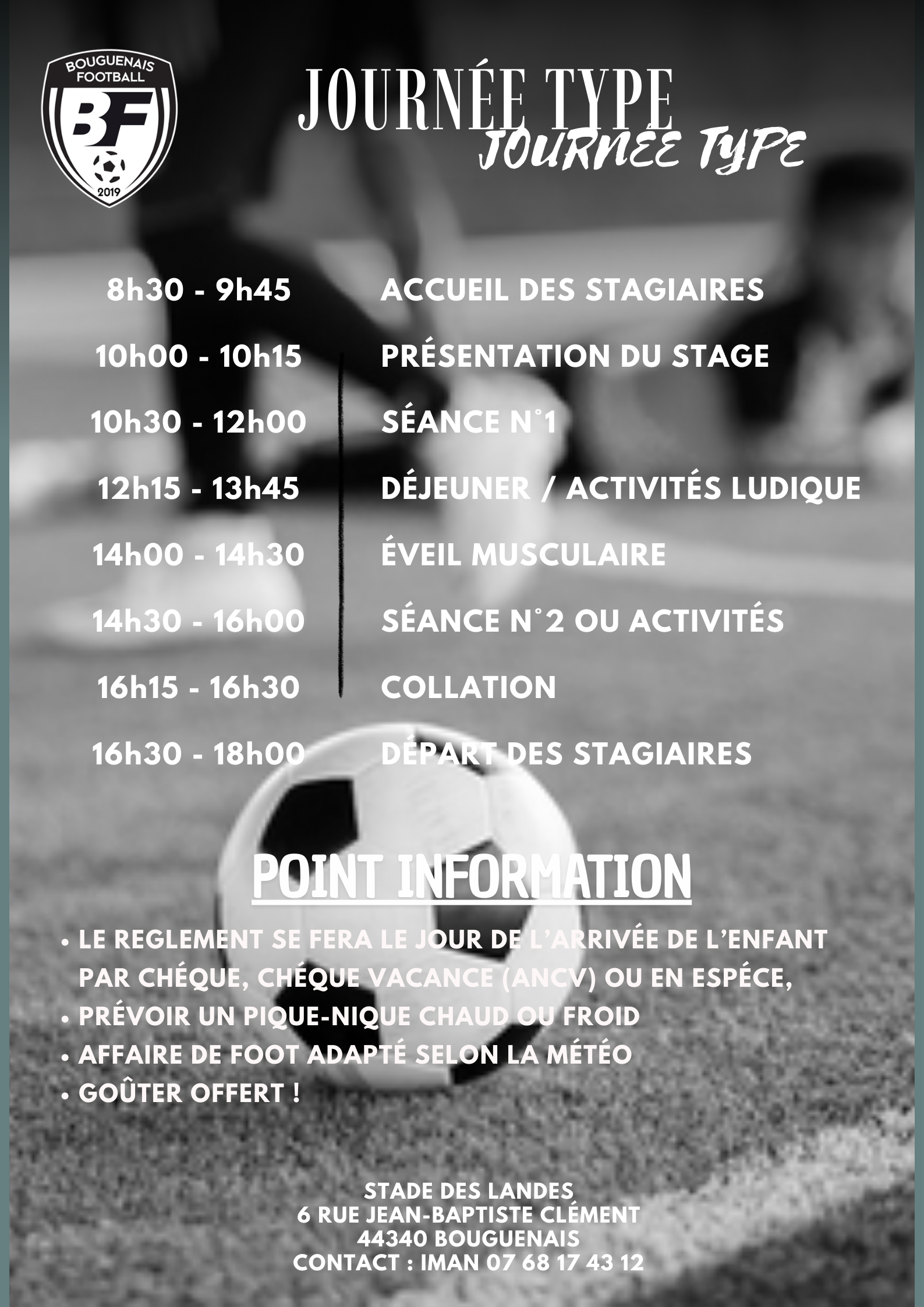 Le Bouguenais Football organise un stage de football ouvert aux garçons et filles de U6 à U13, licenciés et non licenciés.